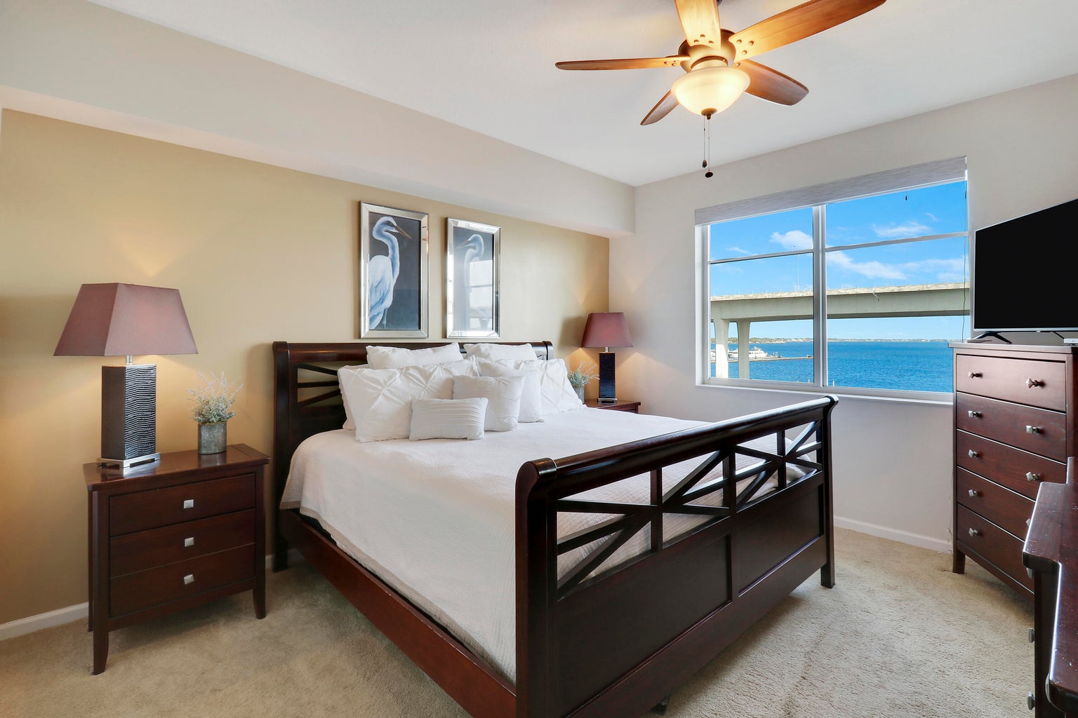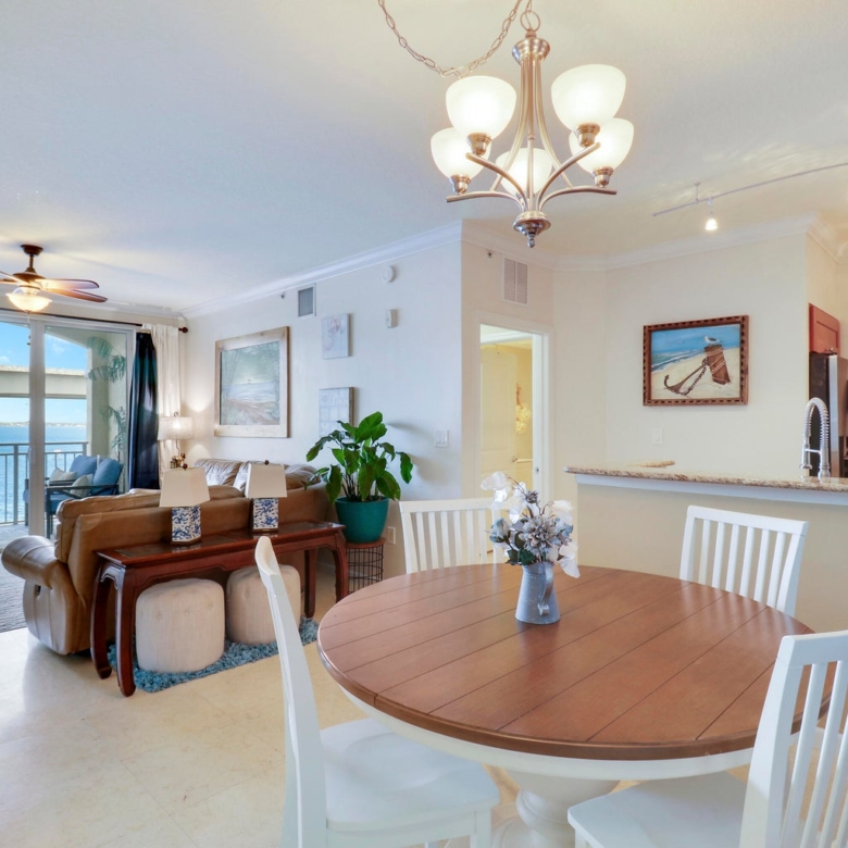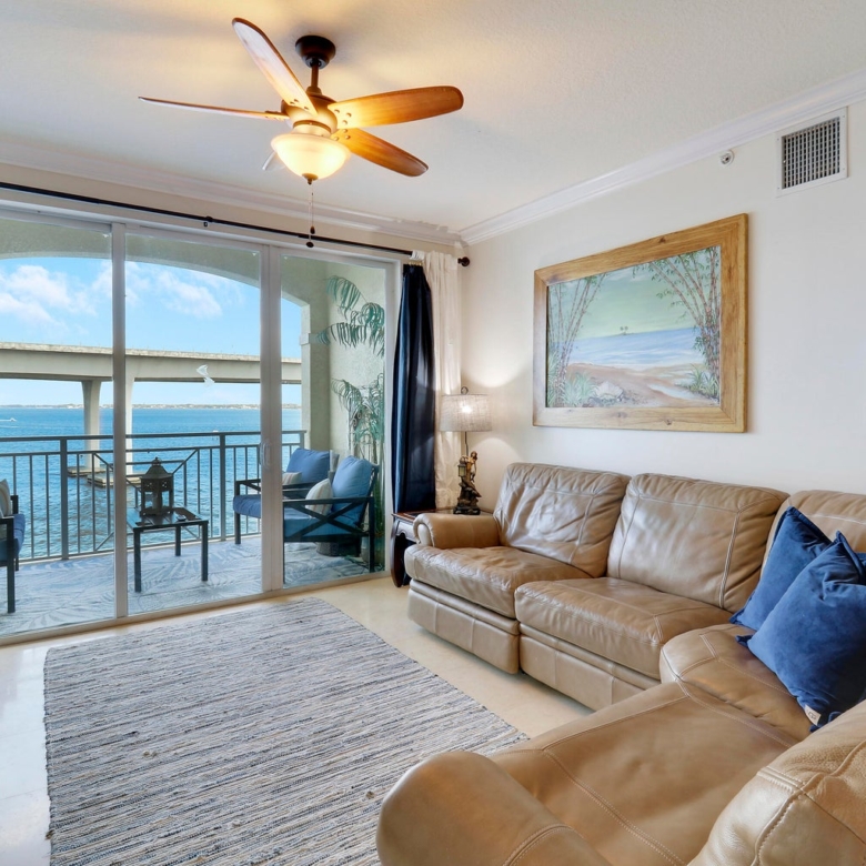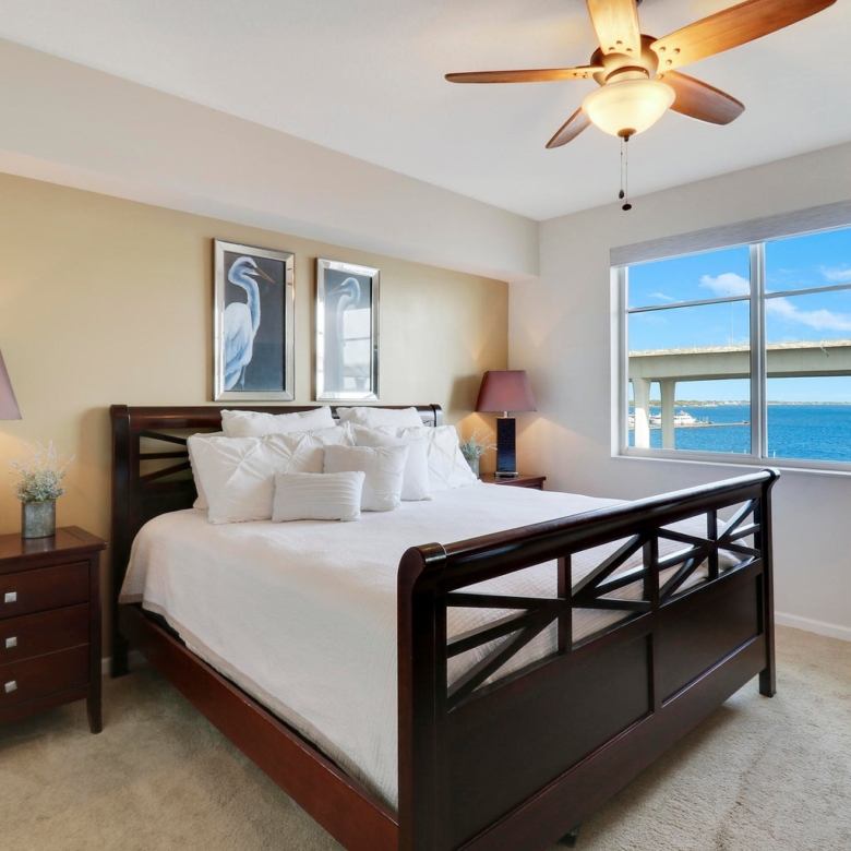 Experience waterfront luxury at The Harborage Yacht Club & Condos in this direct waterfront, turnkey 2-bedroom, 2-bath penthouse. Enjoy stunning sunrise views from the balcony and the Roosevelt Bridge lights at night. Features include a spacious walk-in master closet, impact windows, a soaking tub, granite countertops, and stainless-steel appliances. The secure gated building offers covered parking and elevator access. Amenities include two pools, a hot tub, fitness center, sauna, steam room, billiards, a poolside café, on-site dining at Tidehouse and Latitude 26, and boat slips for vessels up to 100 feet. Located close to Downtown Stuart’s vibrant waterfront, shopping and restaurants. Ideal for seasonal or year-round living.