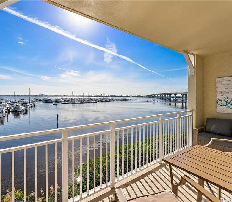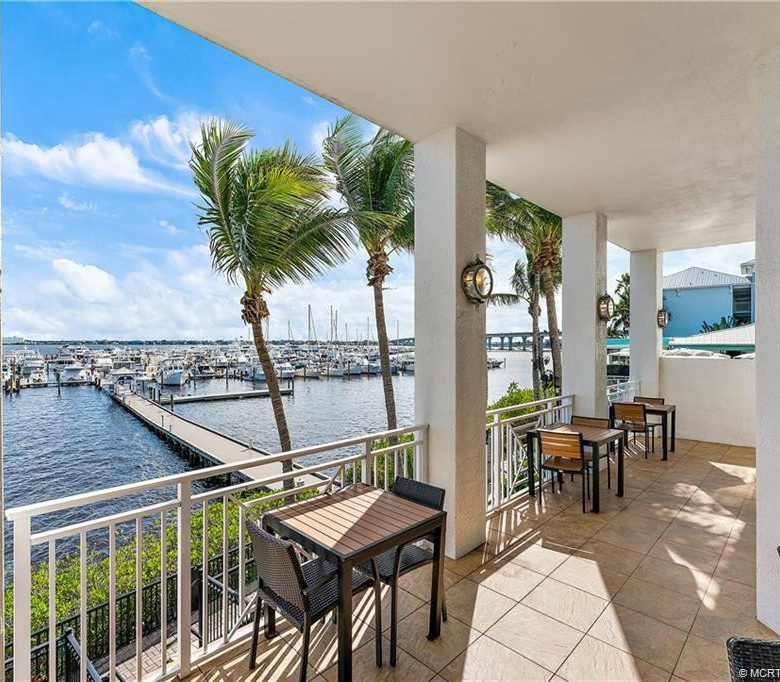 Highly sought after 3-bedroom, 2 bath condos in Harborage Yacht Club with wide water views of the St. Lucie River and just minutes to the inlet. This open floor plan has a wraparound porch that overlooks the marina and downtown Stuart. Kitchen features wood cabinets, granite countertops and wine cooler. Brand new furnishings have just been added to the unit. Third bedroom could be a beautiful office area as well. Amenities include a state-of-art fitness center, saunas, 2 heated pools, hot tub, poolside caf and Yacht Club dining room for members only and a public restaurant onsite Tidehouse. Security gate to the building as well. Wet slips to accommodate up to 100′ yachts. There is a one-time Yacht Club membership fee of $!0,000 (refundable upon selling the unit). Great location, overlook
