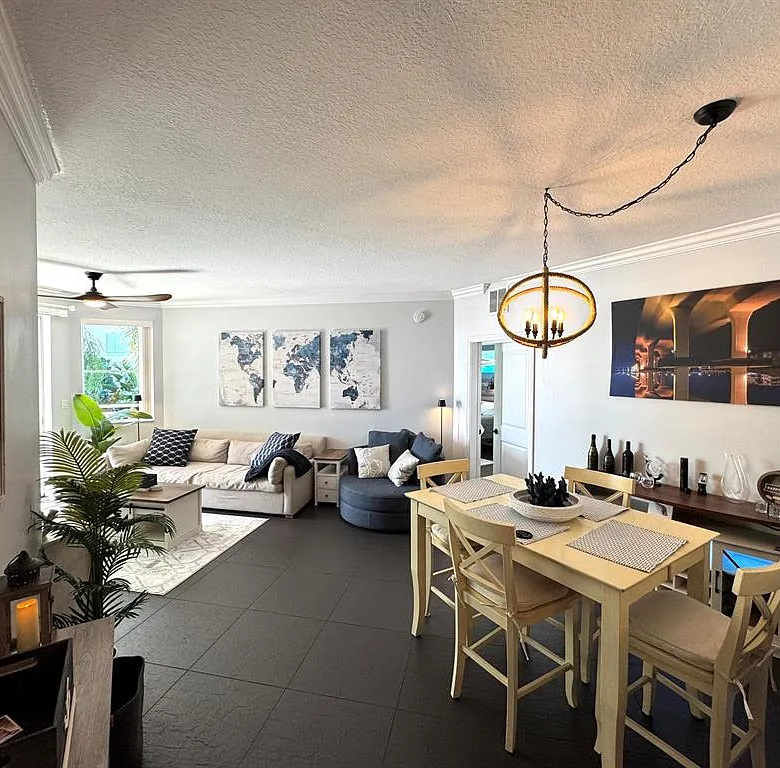 Discover luxury at The Harborage Yacht Club & Condos in this fully furnished, turnkey 2-bedroom, 2-bath waterfront condo, meticulously renovated with modern maritime charm and high-end upgrades. Enjoy breathtaking sunrise views from the master bed through a wall of glass overlooking the marina and Roosevelt Bridge. Thoughtful built-ins in all closets, spacious walk-ins, impact windows, luxury slate flooring, stone countertops, and stainless-steel appliances add to the appeal. The secure gated building offers covered parking and elevator access. Amenities include a vibrant community, clubhouse with fitness center, sauna, steam room, billiards, two pools, hot tub, poolside cafe, on-site dining at Tidehouse and Latitude 26, and boat slips for vessels up to 100 feet. Just bring your suitcase.